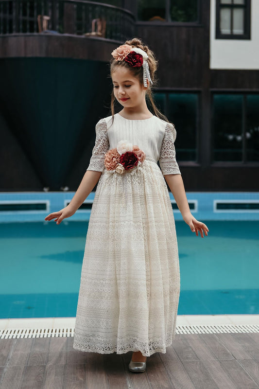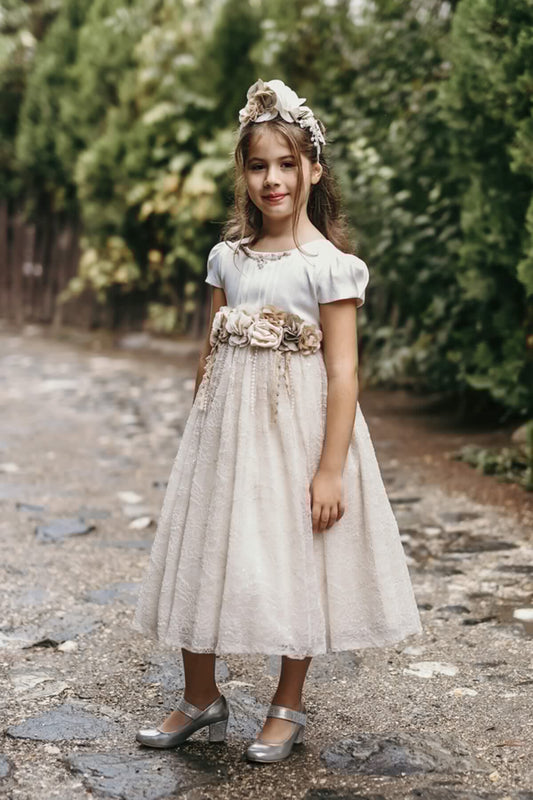Minifashion, Festkjole til barn, korteermer, blonderkjole, beige