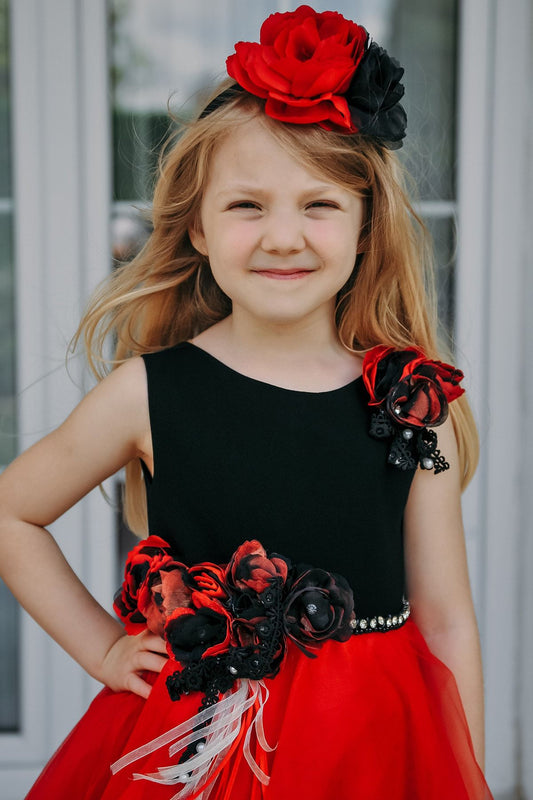 Minifashion, Festkjole til barn, blonderkjole med tyll, blå-hvit/ rød-svart